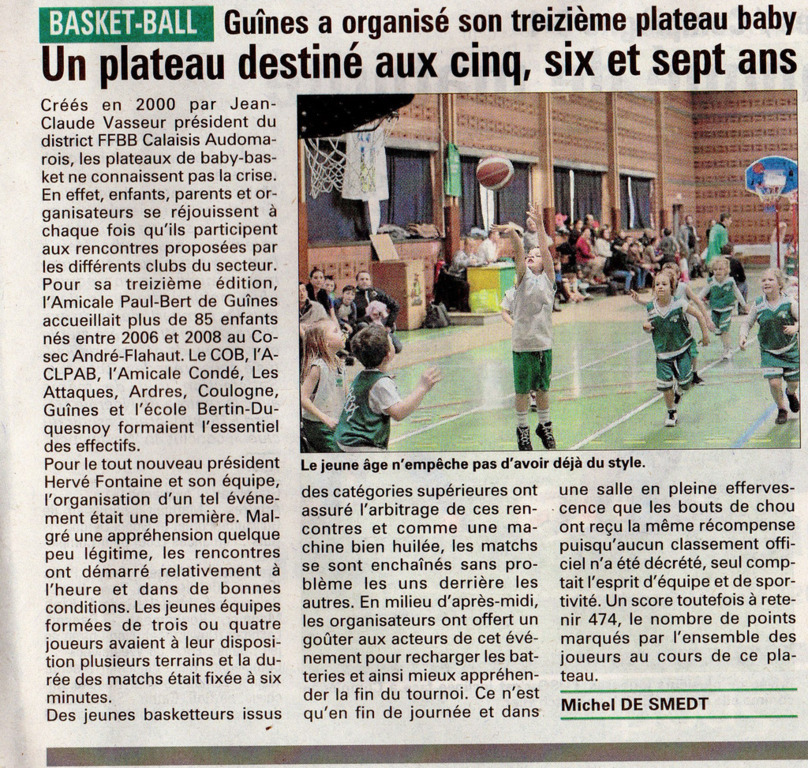 A l'occasion du plateau Baby de l'APB Guines du dimanche 03 mars, les babys du BBCC ont eu les honneurs d'être pris en photo par la presse locale.