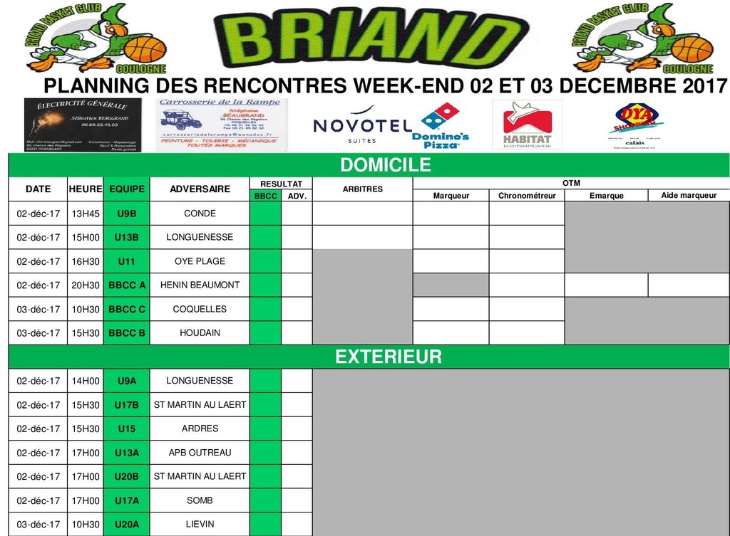 Retrouvez ci-joint le planning complet des rencontres de ce week-end !