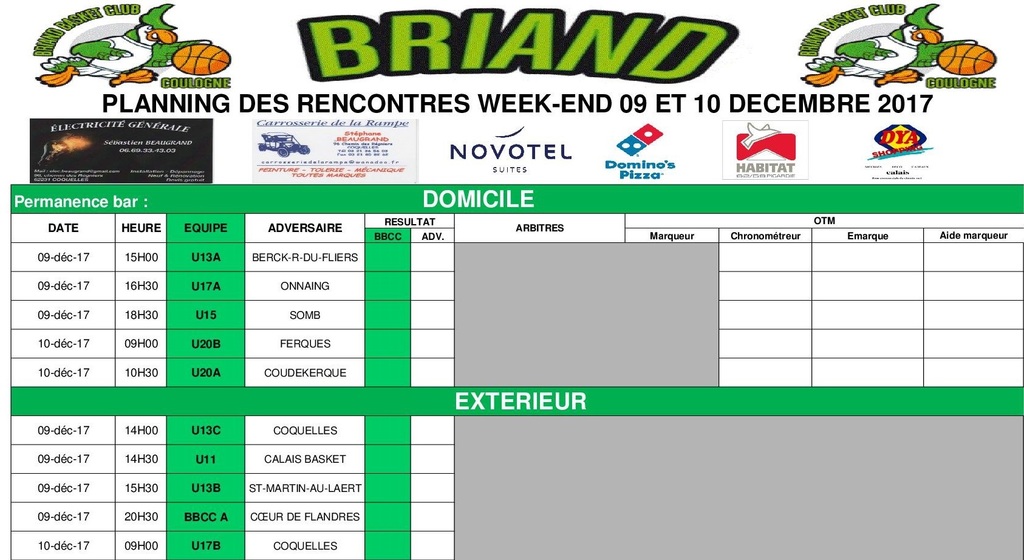 Retrouvez ci-joint le planning complet des rencontres de ce week-end !