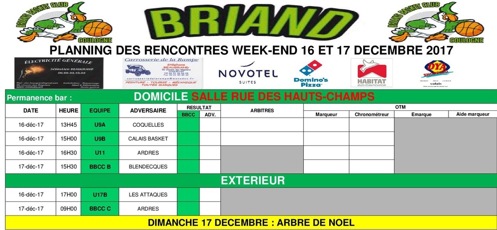 Retrouvez-ci joint le dernier planning de l'année 2017 !