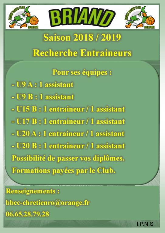 Saison 2018/2019 : RECHERCHE ENTRAINEURS ET ASSISTANTS