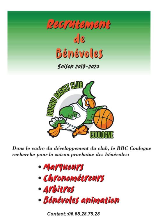 Dans le cadre du développement du club, le BBC Coulogne recherche pour la saison 2019 / 2020 des bénévoles :